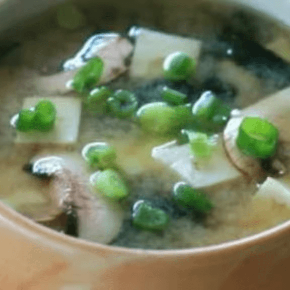Miso soup with steamed pork dumplings