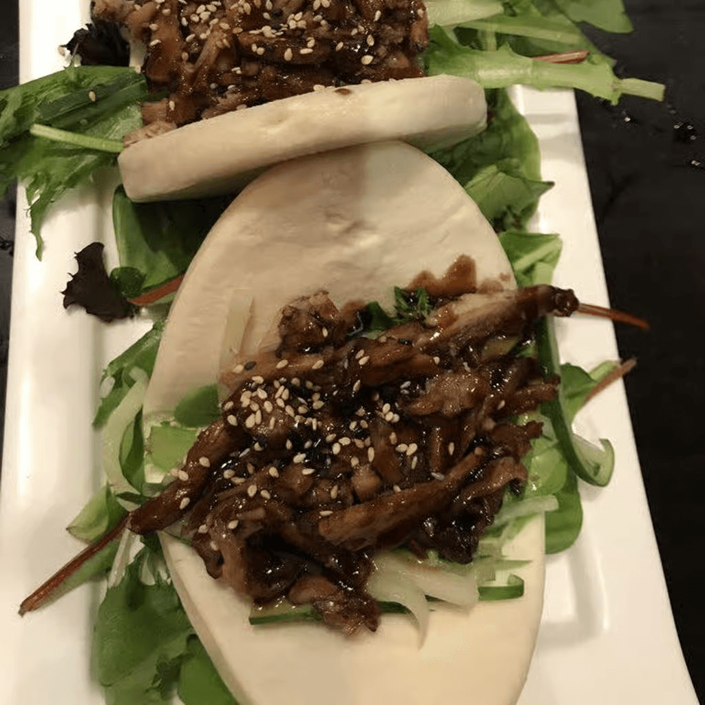 2 pieces. With hoisin sauce on steamed lotus buns