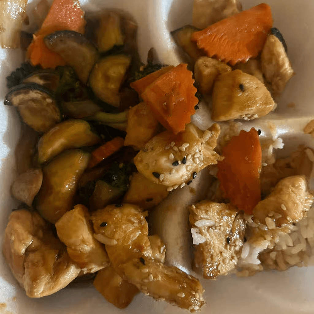 Served with steamed rice & sautéed vegetables & your choice of protein